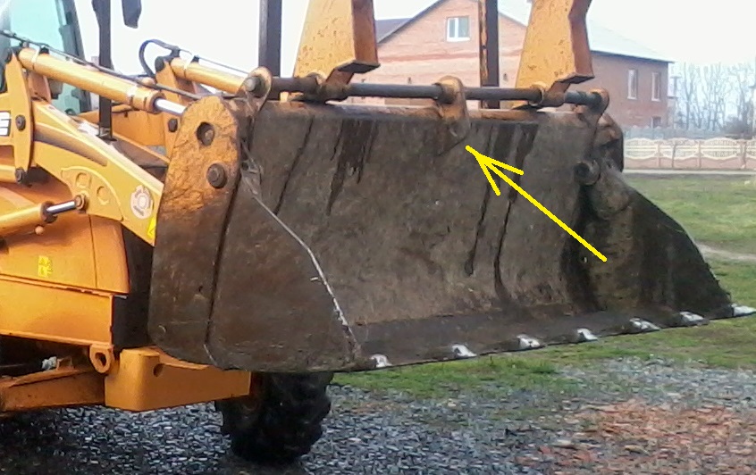 У меня на переднем ковше вот такая штука есть. К этому можно и крюк присобачить. А если нет у тебя такого, так можно и приварить чаво-то подбное.