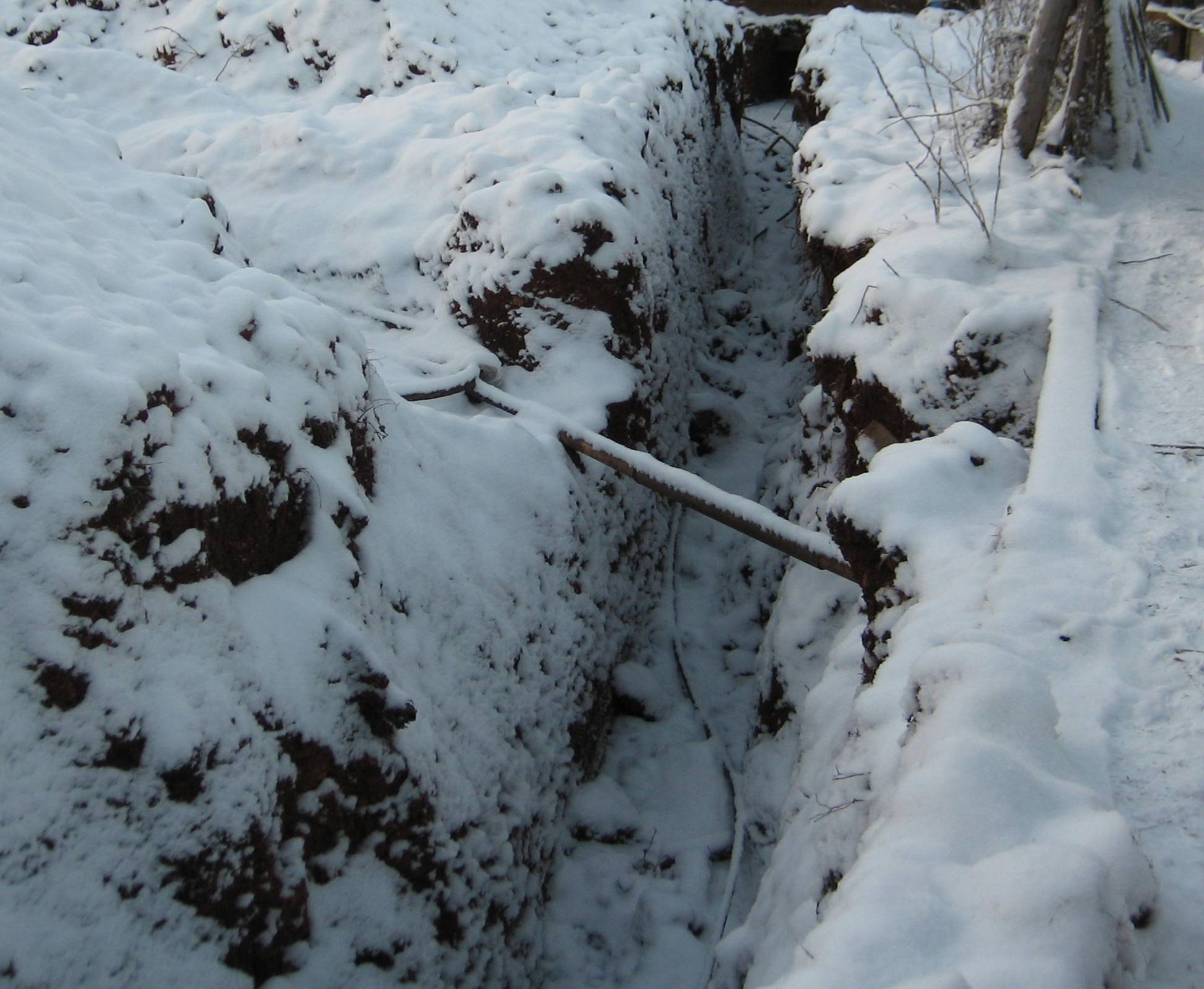 Мой первый кабель после восстановления )) Электрики поставили гильзу на кабель из стальной трубы, где он пересекает водопровод. я так понял это для будущих экскаваторщиков ) При копке, грунт сыпал влево, в этом месте была соединительная муфта кабеля, так как кабель рвали не первый раз. Пришлось помочь ребятам, убрал грунт, расчистил место под "петлю".