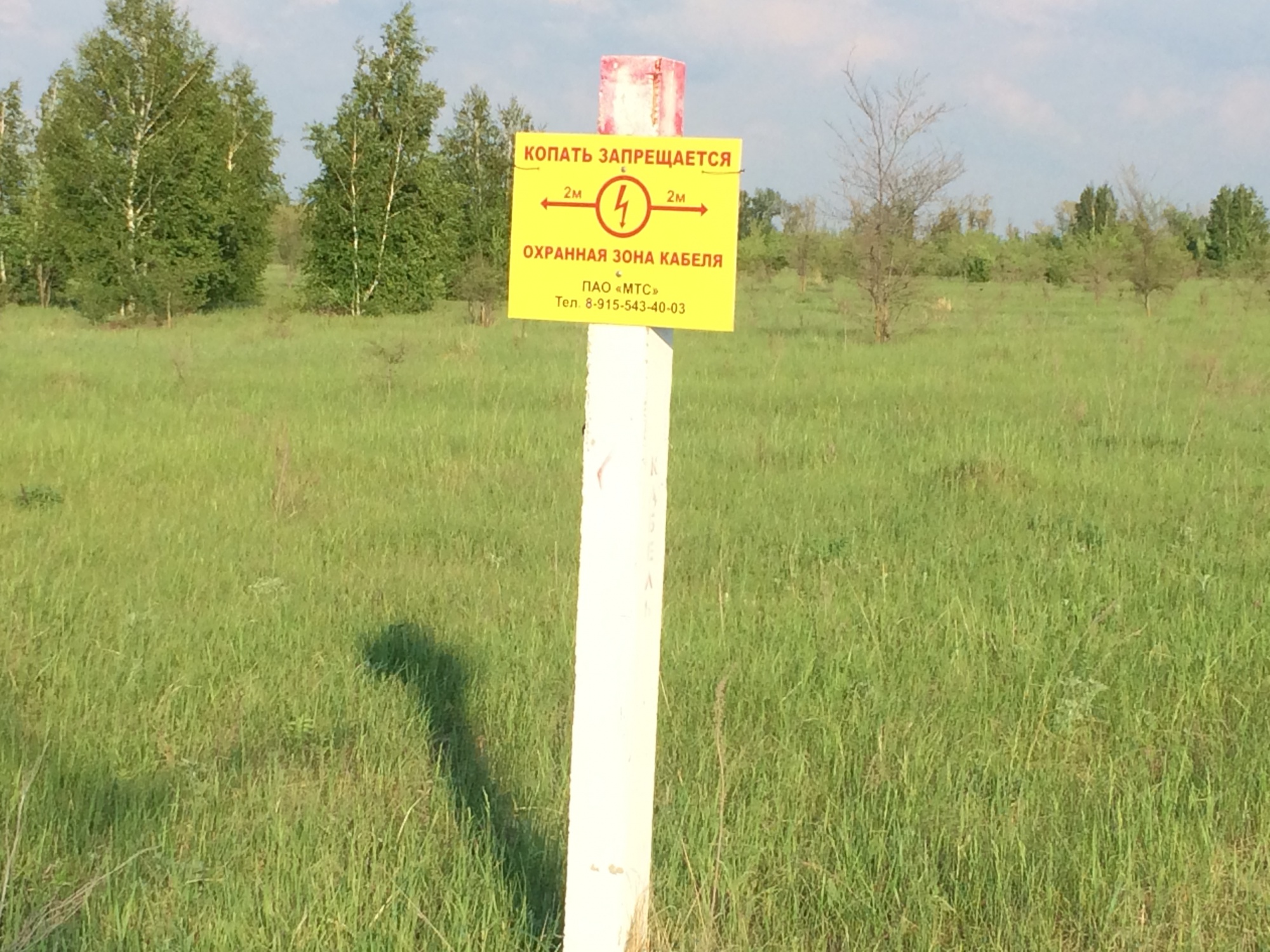 Всем привет! Появилась работа, корчевать деревца под сельхозугодия, но по полю проходит, как минимум два кабеля подземных. Деревья не большие, на фото видно, но заглубляться все равно придется. Кто может по табличке подсказать, на какой глубине, и что укладывается. Кроме таких столбиков с табличками еще идут короткие столбики без табличек. От заказчика ничего не добился, хочешь работая, хочешь не работай)))