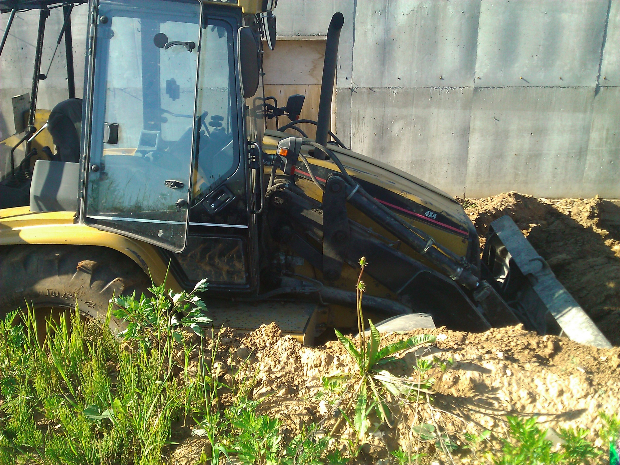 Сегодняшняя ночь. Либхер чуток ушел в при засыпке траншеи (каналья). Дождь, жижа. Утянуло боком. Дергали в две руки.